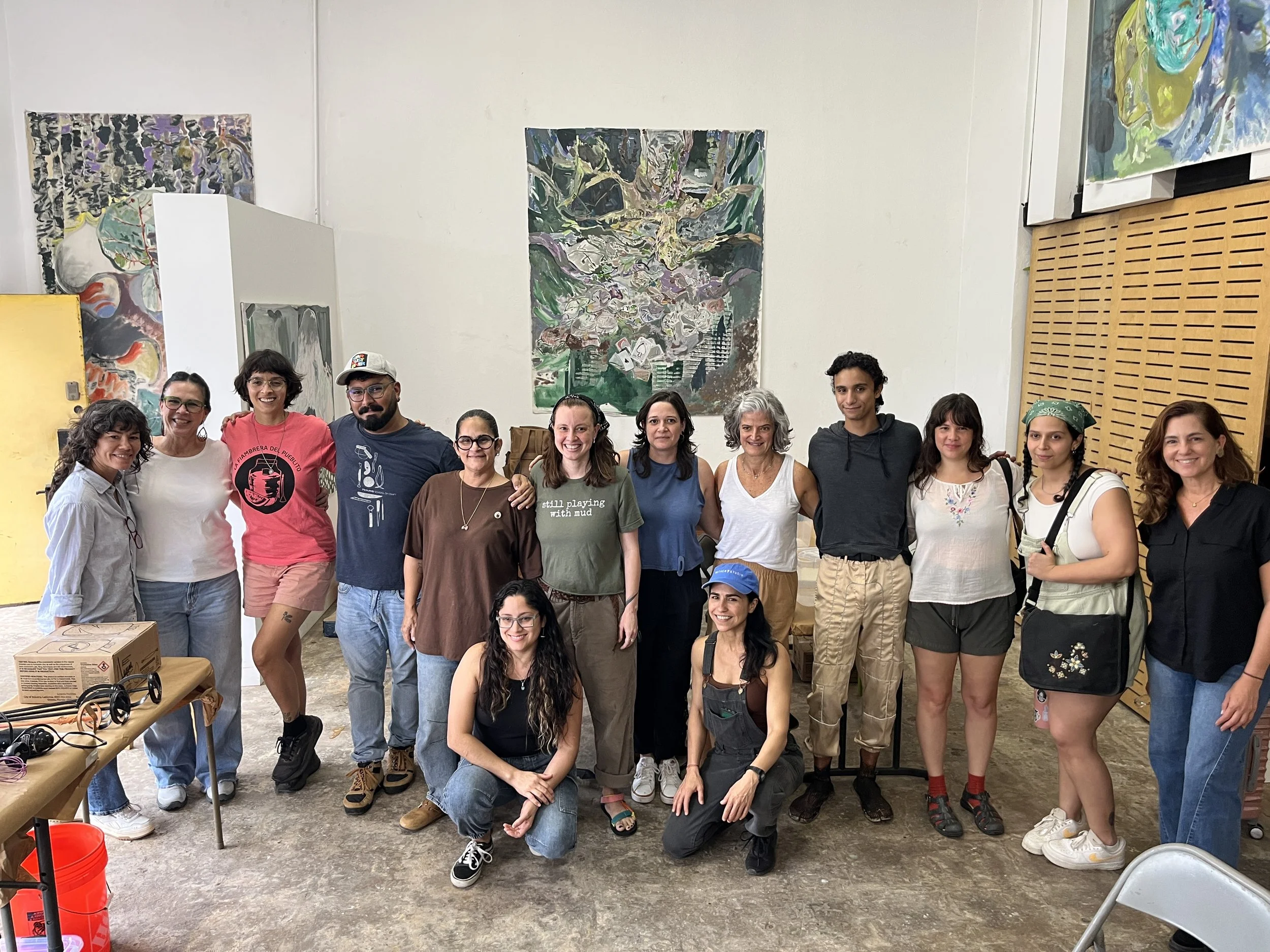 This workshop introduced participants to a comprehensive research process focused on Puerto Rico’s local clays, from their identification, collection, and processing to their formulation and use in a range of ceramic applications. Through hands-on experimentation, participants explored the properties of local clay, the addition of minerals to enhance performance, and its use both as a clay body and as a material for surface finishes such as slips, textures, and glazes. The workshop organized in collaboration with Pitirre Proyectos aimed to promote a more conscious, informed, and sustainable use of local resources, expanding technical knowledge of the island’s clays and their potential within contemporary ceramic practice.